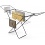 La struttura a cavalletto pieghevole è dotata di ali laterali ripiegabili, che permettono di aumentare la superficie di stenditura quando necessario e di ridurre l’ingombro quando non in uso. La griglia extra offre ulteriore spazio per capi delicati o di piccole dimensioni.